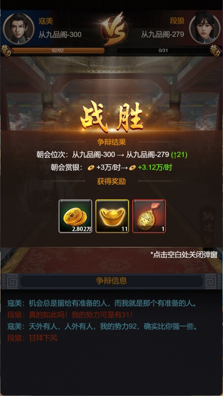 操作简单易上手,点击屏幕就能处理政务、招募门客等。在界面中找到相应的功能按钮,轻松一点即可完成操作。新手玩家也能快速熟悉,尽情享受当官的快乐,感受游戏的魅力。
