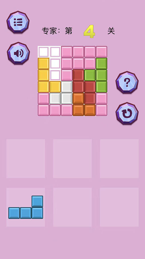 方块拼图闯关游戏,把各种方块形状拼满格子即可过关。