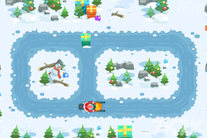 - 控制雪橇:操控圣诞爷爷的雪橇在雪道上滑行,躲避障碍物。