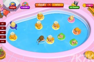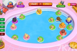 泳池派对开始啦,你可以将泳池内相同的泳圈拖动到一起合并起来,并将合并泳圈的奖励用来升级泳池派对的各种设备,快来体验一下吧。