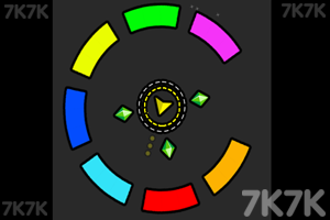 游戏中,我们需要观察五彩砖块旋转的规律,发射三角砖将相同颜色的五彩砖进行消灭即可得分,现在就让我们一起来试试吧!