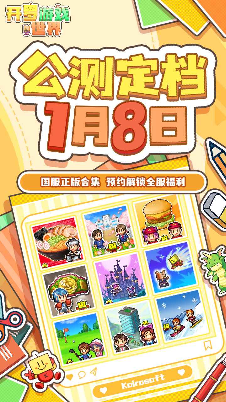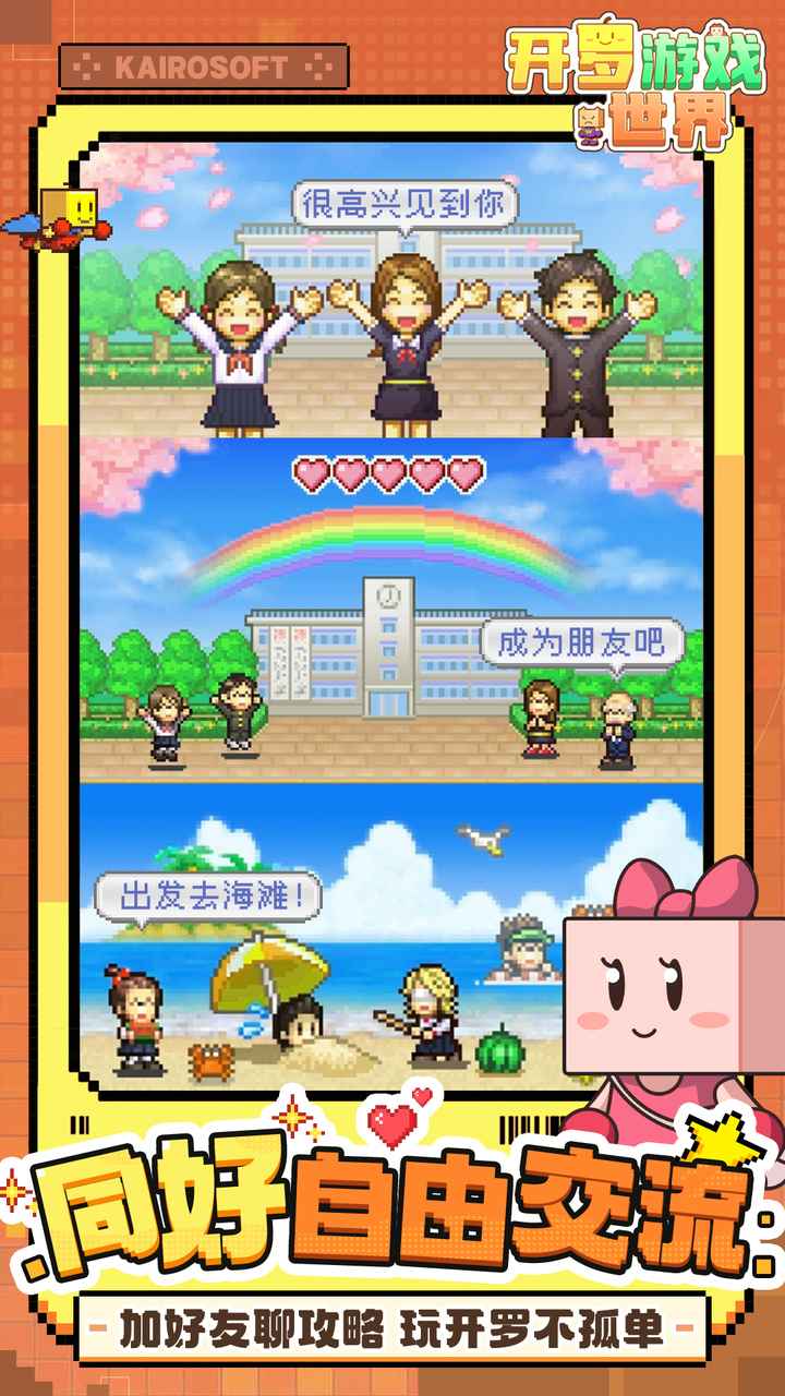 开罗游戏世界是根据开罗游戏系列的IP人物和经典玩法授权改编的游戏。在这多彩世界,能尝试无限种生活,如当校长、管汉堡店。还能创建专属形象,探索居民故事,和好友切磋经营。经典学院主题模拟经营,等你来打造梦想学校。