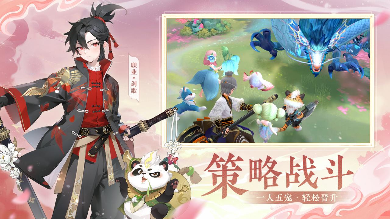 - 宠物搭配:一人五宠随心搭,宠物多段进化,实力强大。