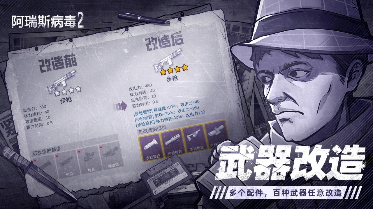 - 武器改造:选择多样武器,用配件改造,提升战斗能力。
