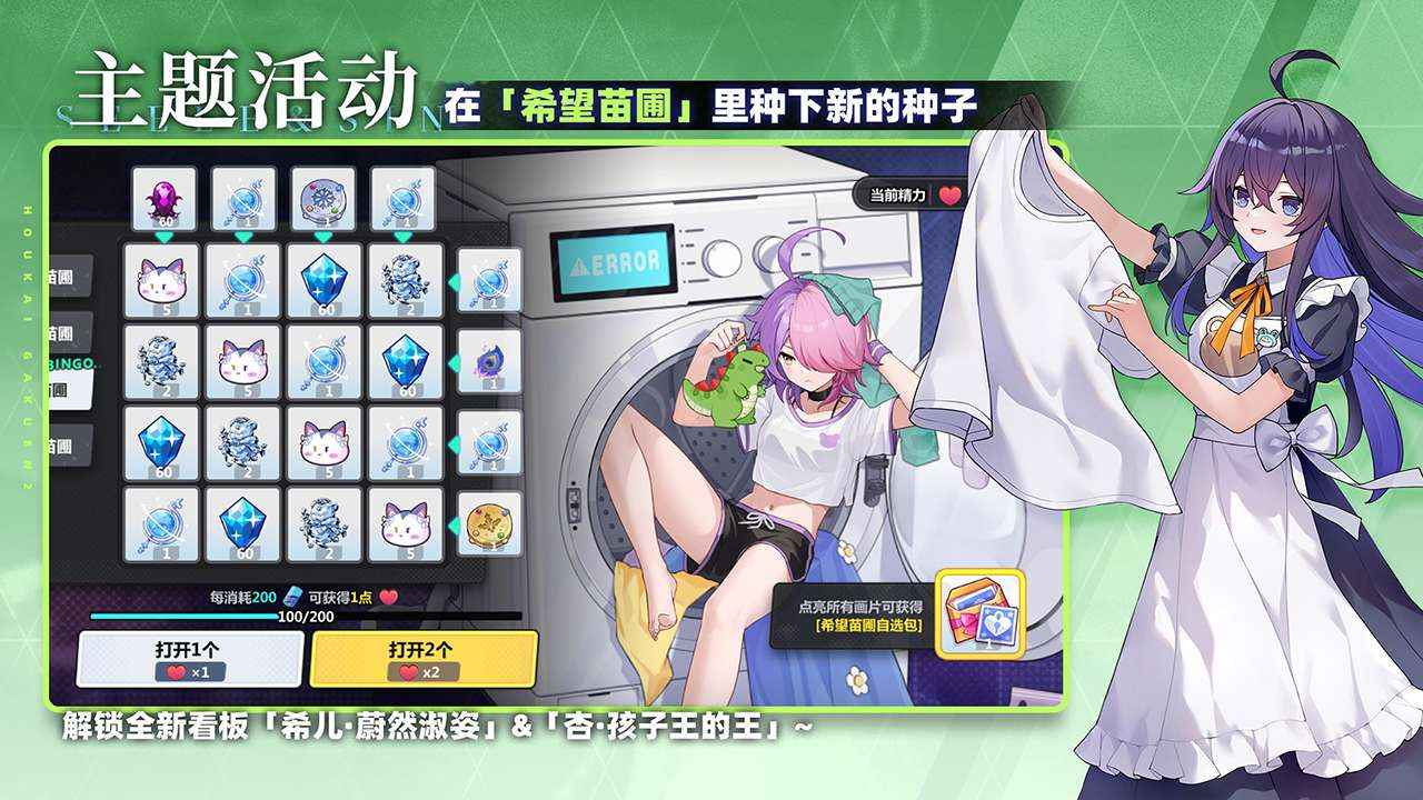 - 活动参与:在「希望苗圃」活动里种下种子,解锁全新看板。