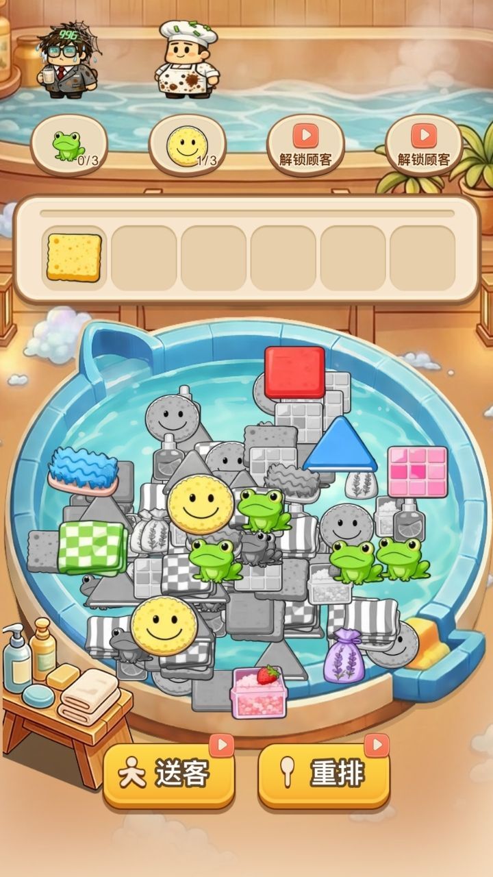 泡了个澡是一款超解压堆叠消除游戏,特别适合打工人。在游戏里,玩家可以通过堆叠消除的玩法,尽情释放压力,洗去一天的疲惫,享受轻松愉悦的游戏体验。