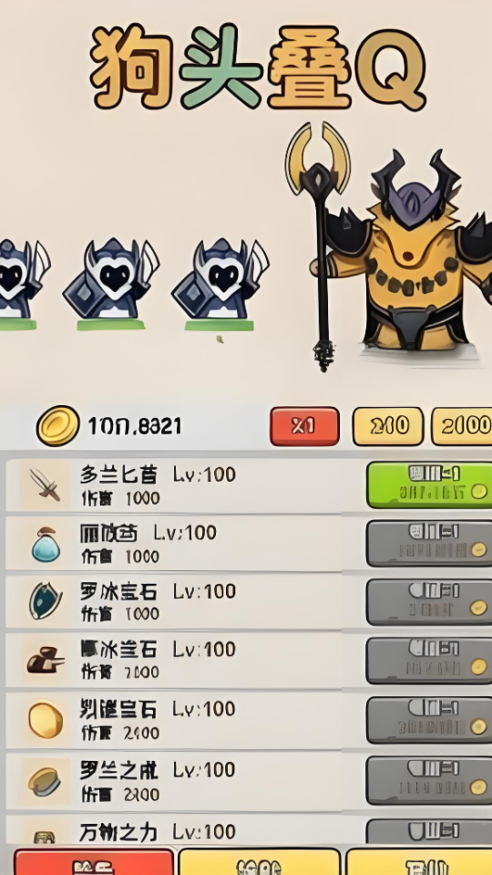 - 放置养成:不断放置狗头形象,通过叠Q来提升养成等级。