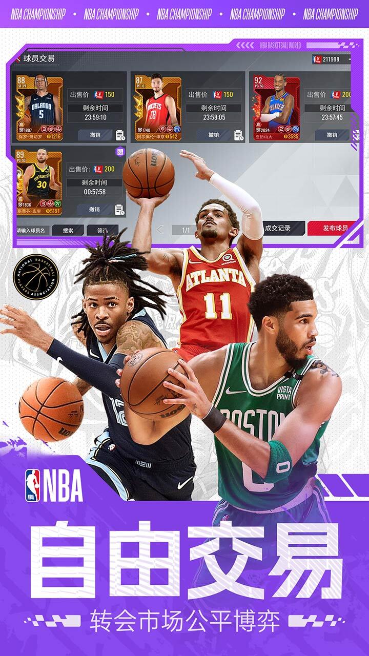 《美职篮篮球世界》是一款获得NBA官方正版授权的沉浸式篮球经理模拟手游,带你化身球队总经理兼主教练,亲手打造属于你的冠军王朝!游戏完整还原30支NBA球队、数百位现役与传奇球星的真实数据、球衣、动作乃至招牌技能——你可以签下库里组建“三分大队”,围绕约基奇打造“掘金体系”,或复刻乔丹时代的公牛铁血防守。通过战术板自由设置攻防策略,临场调整阵容轮换,参与从季前赛到总决赛的完整赛季征程。玩法深度结合球员培养、交易谈判、选秀抽卡与伤病管理,考验你的经营智慧与临场决策。比赛采用写实3D引擎模拟,动作流畅,镜头专业,支持加速或离线自动进行,兼顾真实感与效率。界面简洁直观,操作门槛低,但策略深度足,无论是硬核战术控还是休闲球迷都能找到乐趣。无需实时操作,随时随地“执教”你的梦之队,在《美职篮篮球世界》中,总冠军,由你定义!
